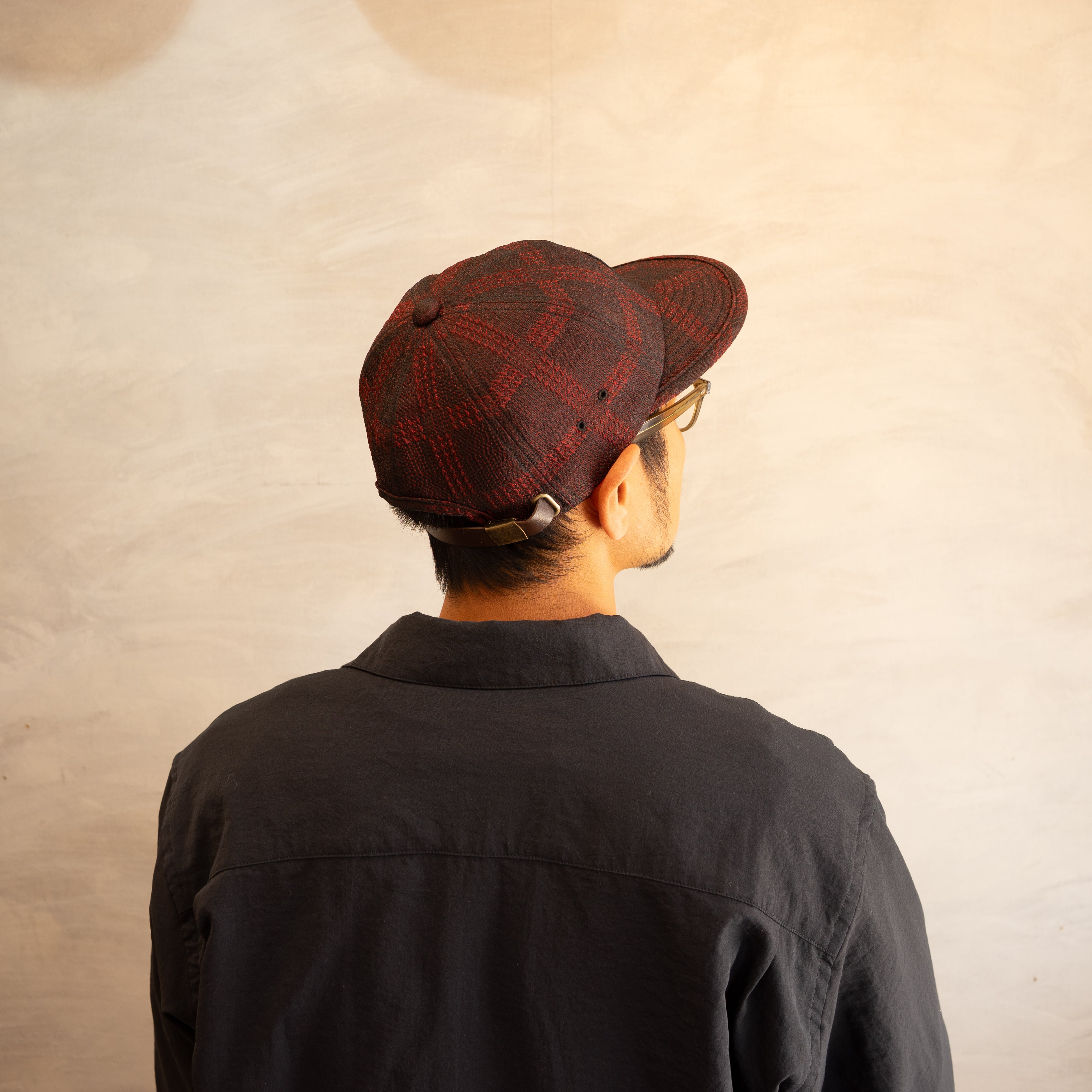 デッドストックチェックサテン生地を使用せた6panelキャップです。