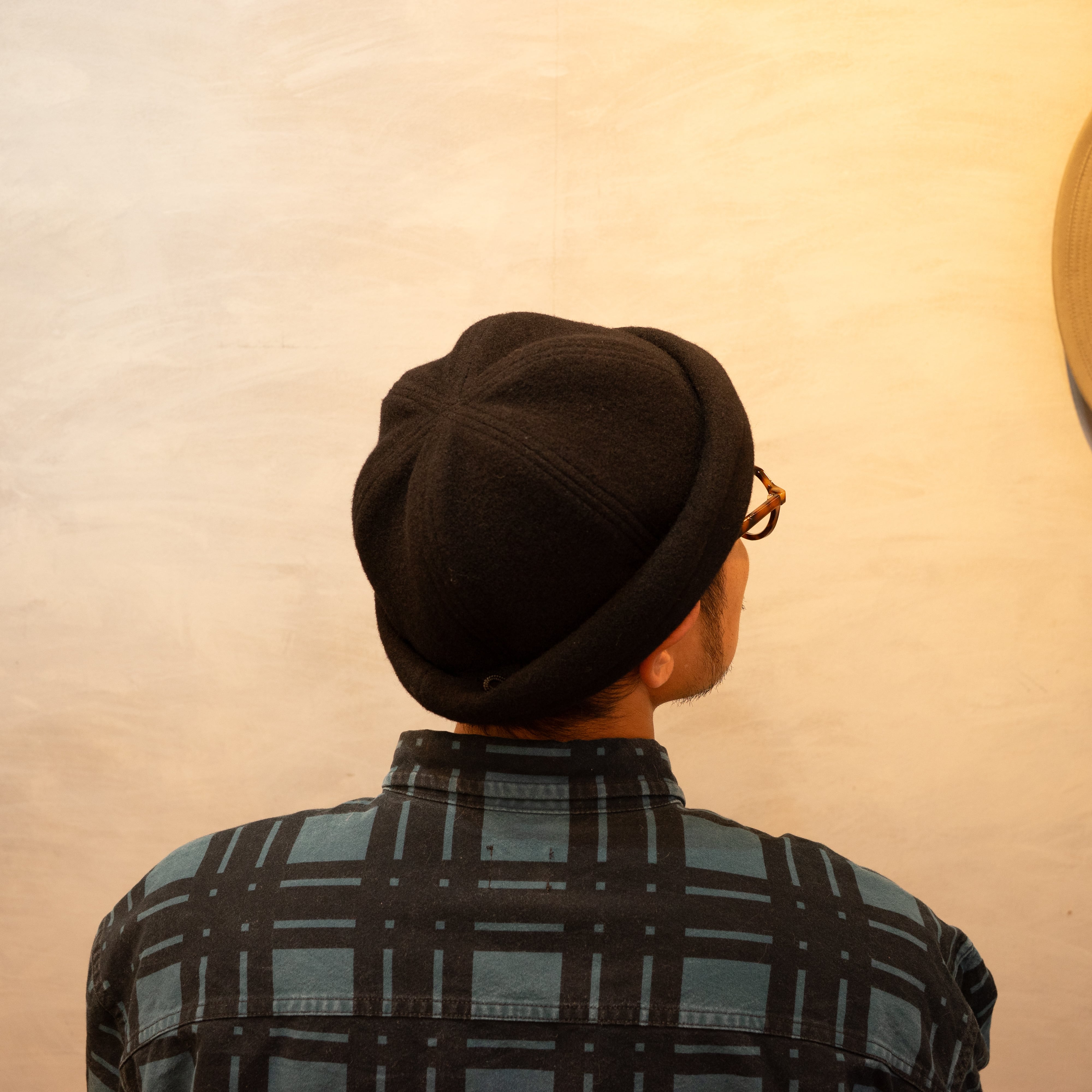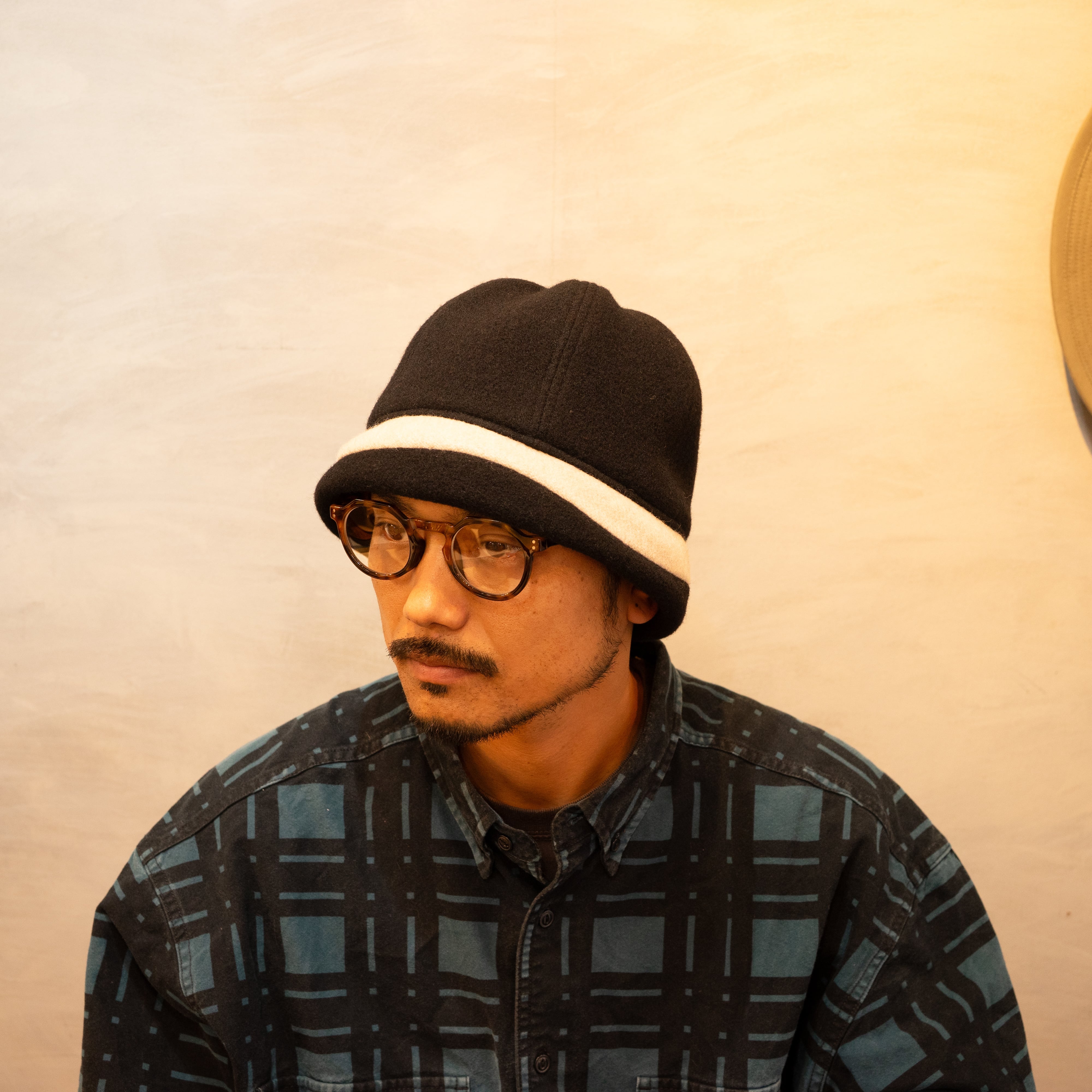 ウールモッサ生地を使用したフィッシャーマンキャップ。